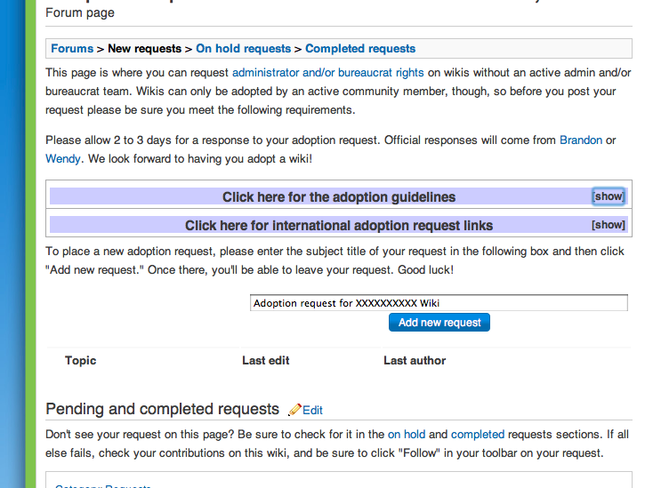 The process of adopting a wikia is one where a contributor to any wikia that does not have...