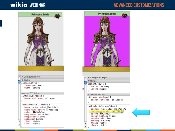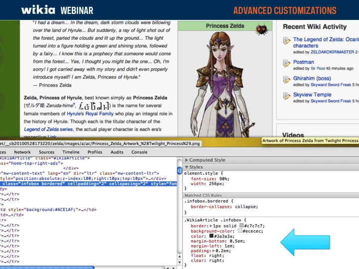 Across Wikia you will see CSS in all shapes, sizes and colors. Looking at other wikis is a great way to get inspired as well as learn how others are using CSS. So what should you do if you see a customization you like and you want to learn what CSS is controlling it? You can use tools built into your browser to see what is being applied.