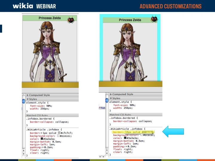 On this slide I adjusted both the width and the color associated with the border for the infobox.
