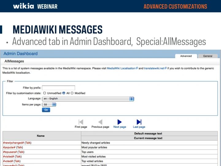 Description Aired March 22, 2013 This webinar covers how to update Mediawiki messages and use...