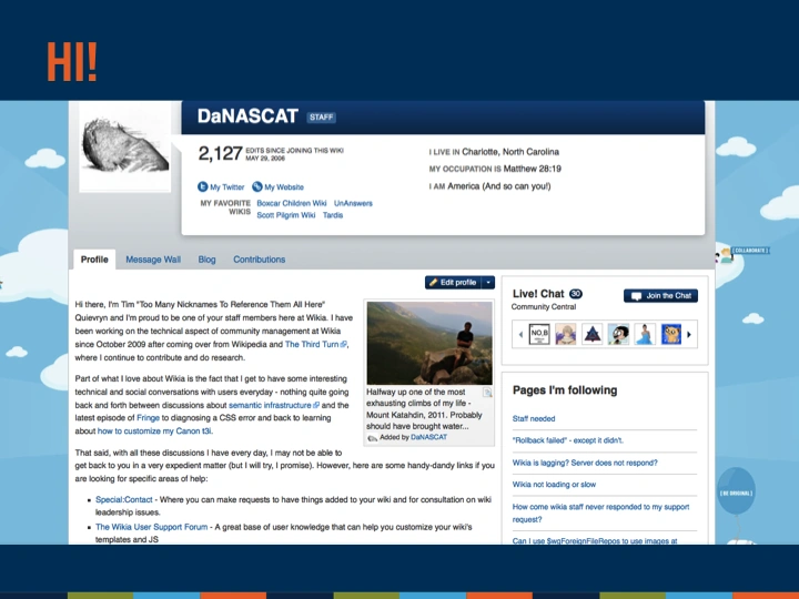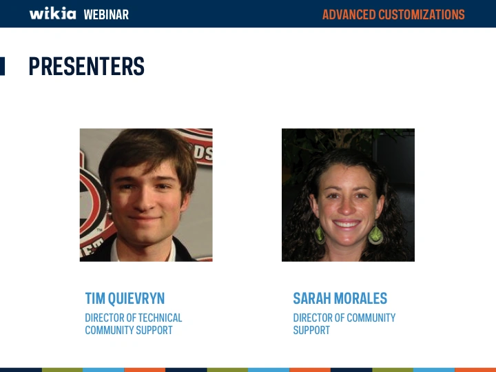 I’m Sarah Morales, a Director of Community Support at Wikia and today joining me is Tim Quievryn, Director of Community Technical Support