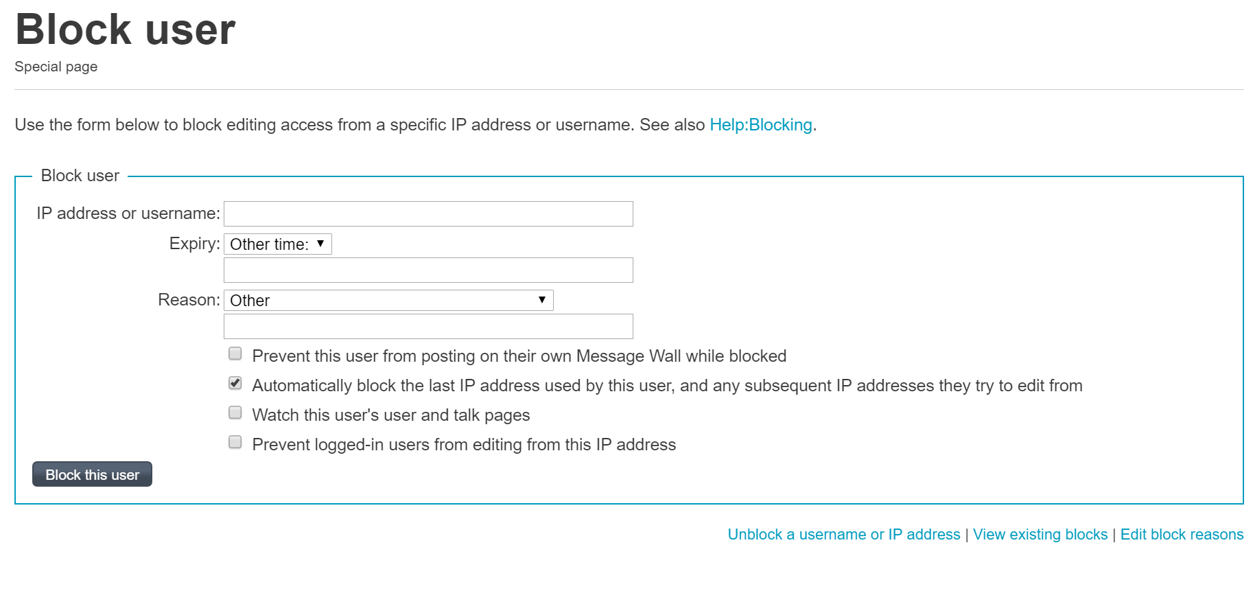 A Special:Block page