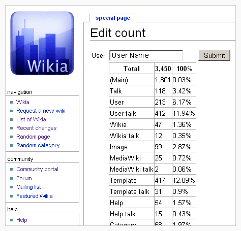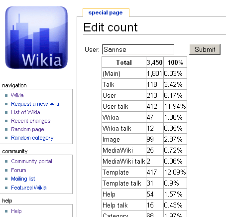Screenshot of a the edit count page. This image was uploaded by Wikia Staff.