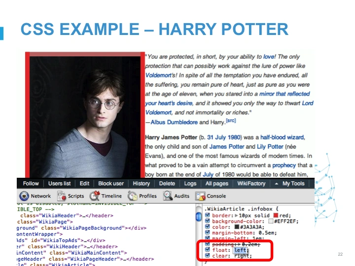 Today we are going to give you an introduction to CSS, what are the basic elements of CSS, pointers on how you can get started with using CSS and how it is used on Wikia. I want to start by saying that this will be a basic intro. CSS is a complex language, and we could spend hours describing all of its elements and capabilities, but as we don’t have time to do that, we are going to start with the basics. At the end we will list where you can get more advanced help, and please feel free to submit questions throughout the session. At the end we will do a Q&A as well as a live demo.