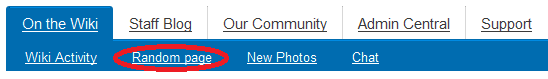 Location of the random page button in the Wiki Nav.
