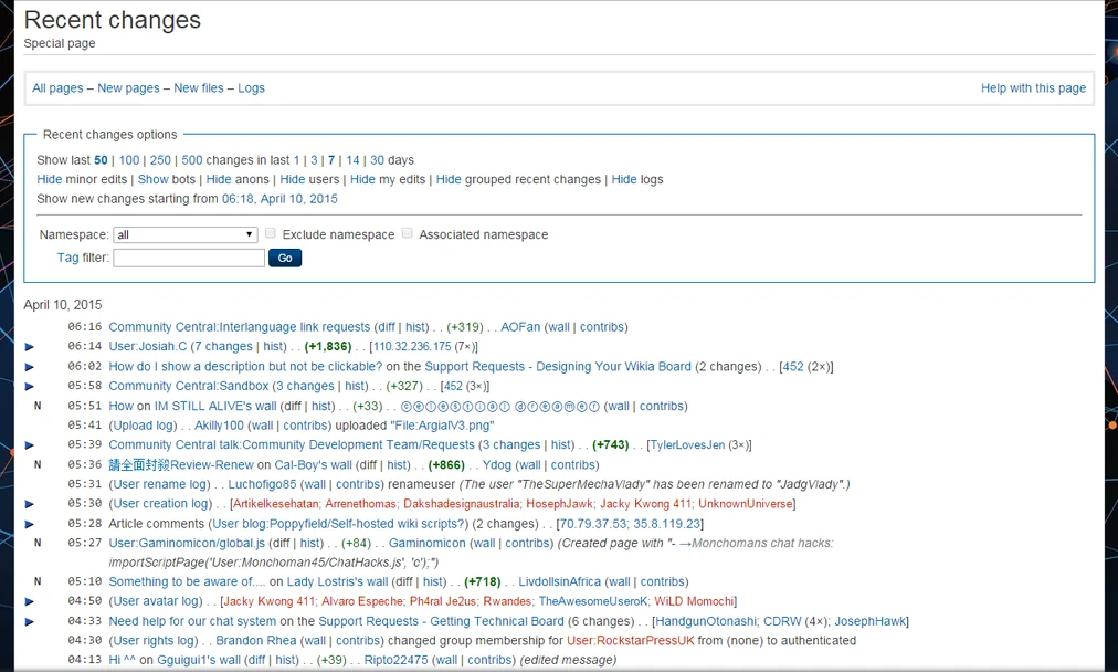 Recent Changes (or as it's sometimes referred to, RC) is much like Wiki Activity: they both...