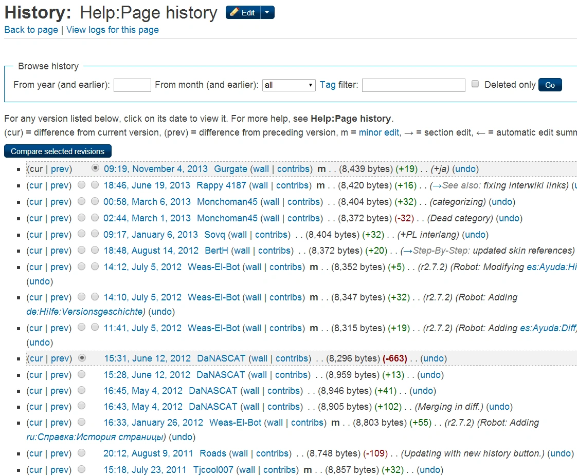 Each editable page on Wikia has an associated page history, which consists of the old versions...