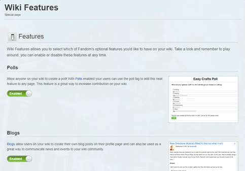 Wiki Features is a Special Page that allows admins and founders to enable or disable some of...