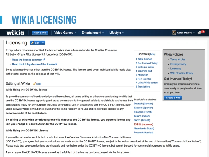 Licensing on Wikia