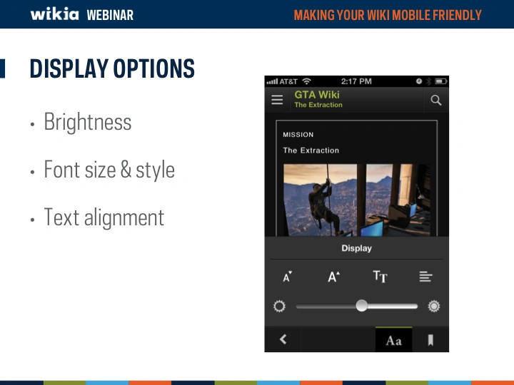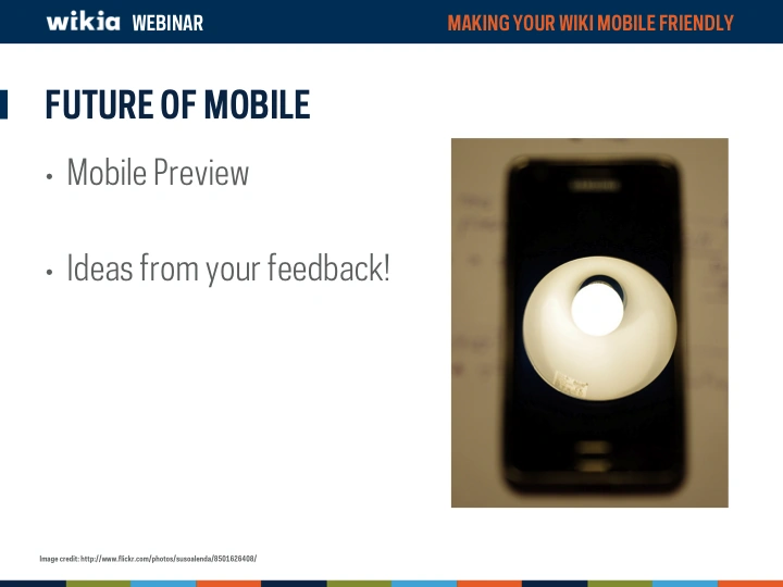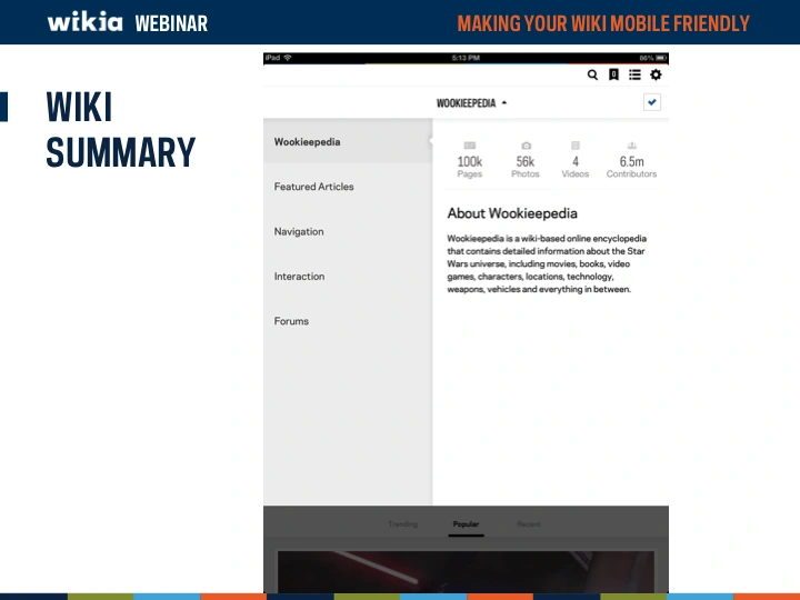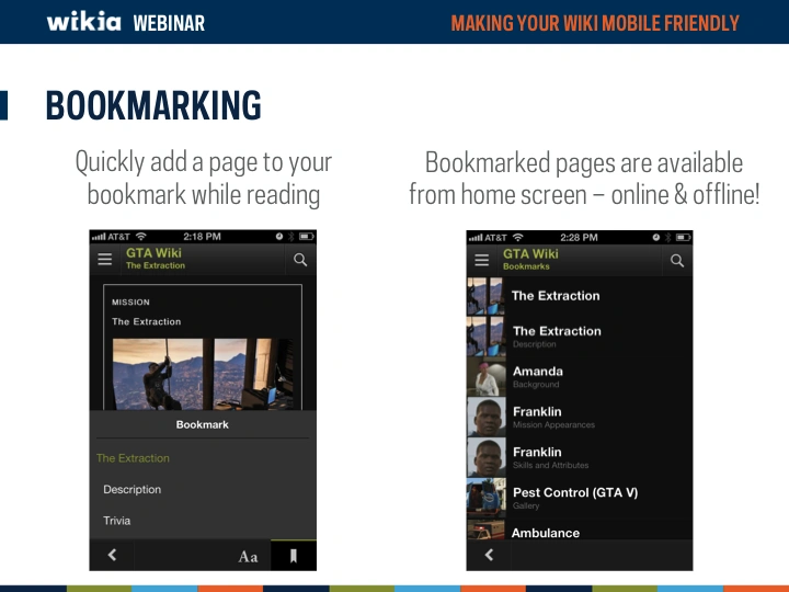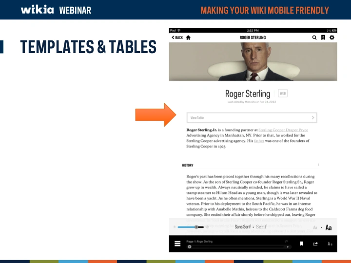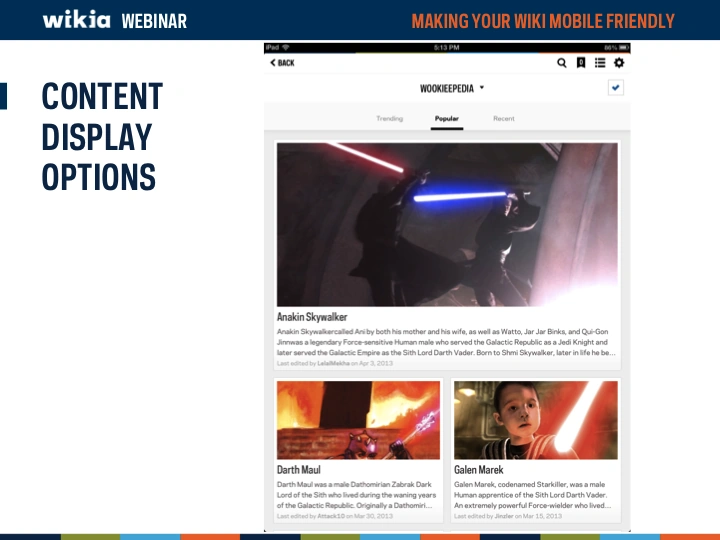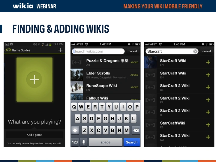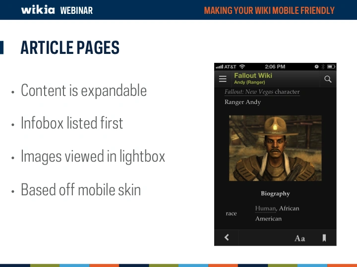 Mobile devices are becoming more and more a major way of how the world views your wiki. But is your wiki optimized to look good on a mobile device? This webinar overviews Wikia's unique mobile apps (Game Guides and My Wikia) as well asĀ now to modify your wiki to look and function better on a mobile device.