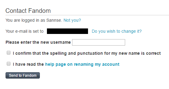 On FANDOM, you are allowed to change your username. This can be done once and only once. Before making an account rename request, make sure that the new name is in fact the one you want to be called, and that the username is not already taken. Once you have decided to change your name, send your rename request to FANDOM Staff, who will then review the request to rename your account.