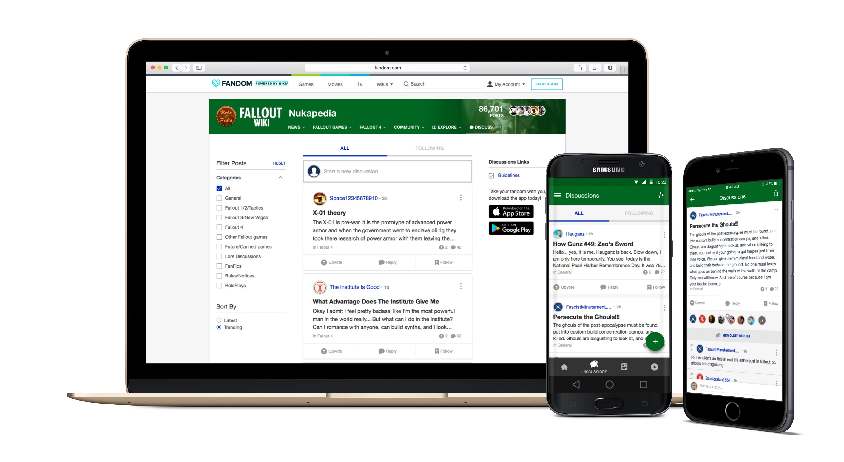 In your mobile browser and in Community Apps, you can filter by category, and switch between 'Latest' and 'Trending', via the
